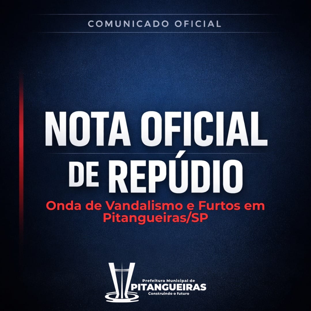 A Prefeitura Municipal de Pitangueiras manifesta profunda preocupação com a recente sequência de atos de vandalismo e furtos que atingiram equipamentos públicos da cidade durante o último feriado. Os episódios, que resultaram na suspensão de aulas e danos materiais, coincidem com a exposição de informações sensíveis sobre prédios e obras municipais em redes sociais.